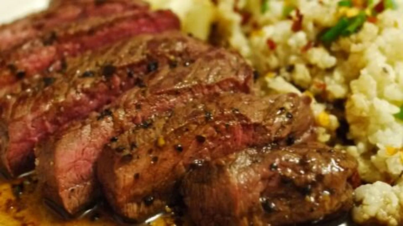 - إحضار طبق فرن مناسب للتقديم على المائدة، ومد اللحم في قاع الطبق حتى تغطيته بالكامل ثمّ سكب خليط القرنبيطـ والكريمة على اللحم ومساواة السطح إلى أن تتغلف طبقة اللحمة بالكامل.