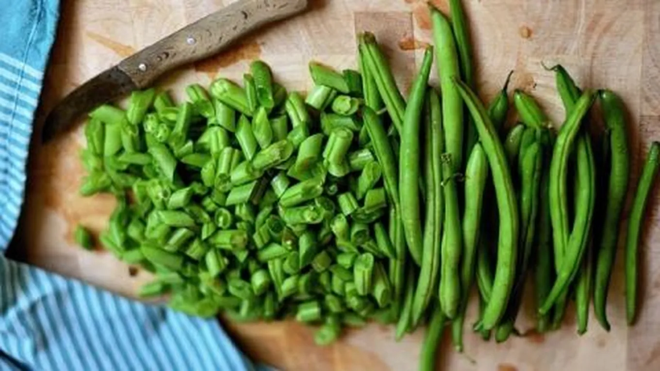- تقطيع الخضراوات، والفاصولياء بواسطة سكين حادة إلى قطع متوسطة الحجم.