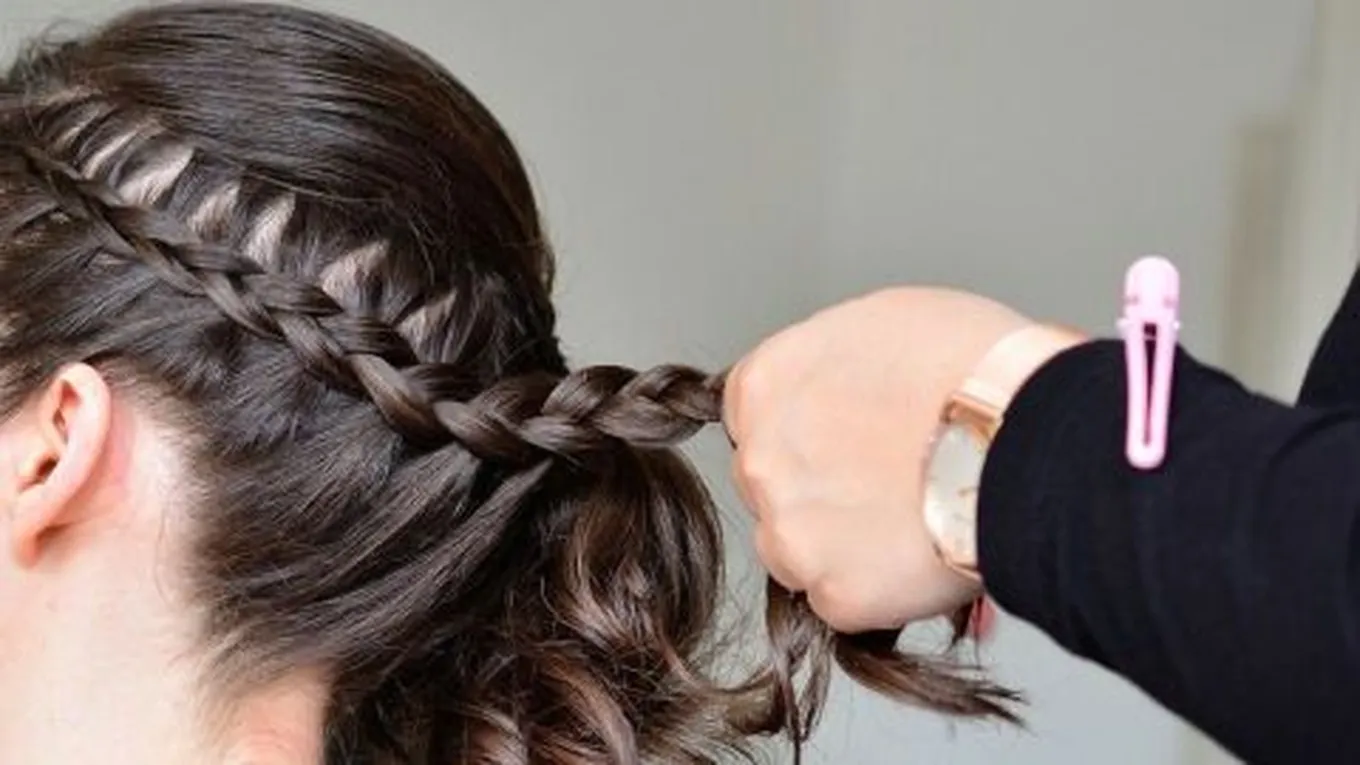 - تُقلب جديلة السمكة بإدخالها من الفجوة التي أُدخل فيها ذيل الحصان، وتُثبت على الرّأس بمشبك.
