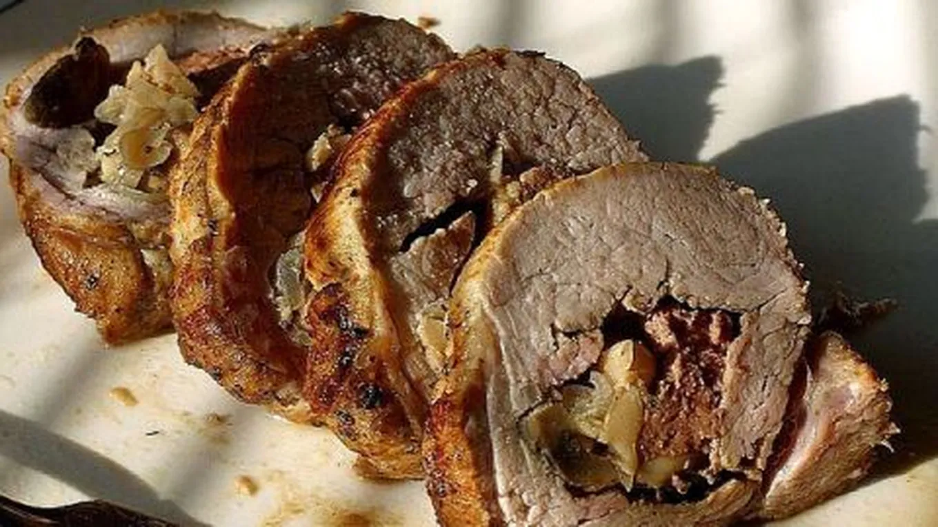 - إضافة البصل وتقليبه حتى ينضج ويلين، وإضافة الثوم والتحريك ثم إضافة عصير التفاح وعصير الليمون وترك المكونات على نار عالية لتطهى ويتبخر السائل مدة خمس دقائق ويصبح تقريباً المتبقي ثلاث ملاعق.