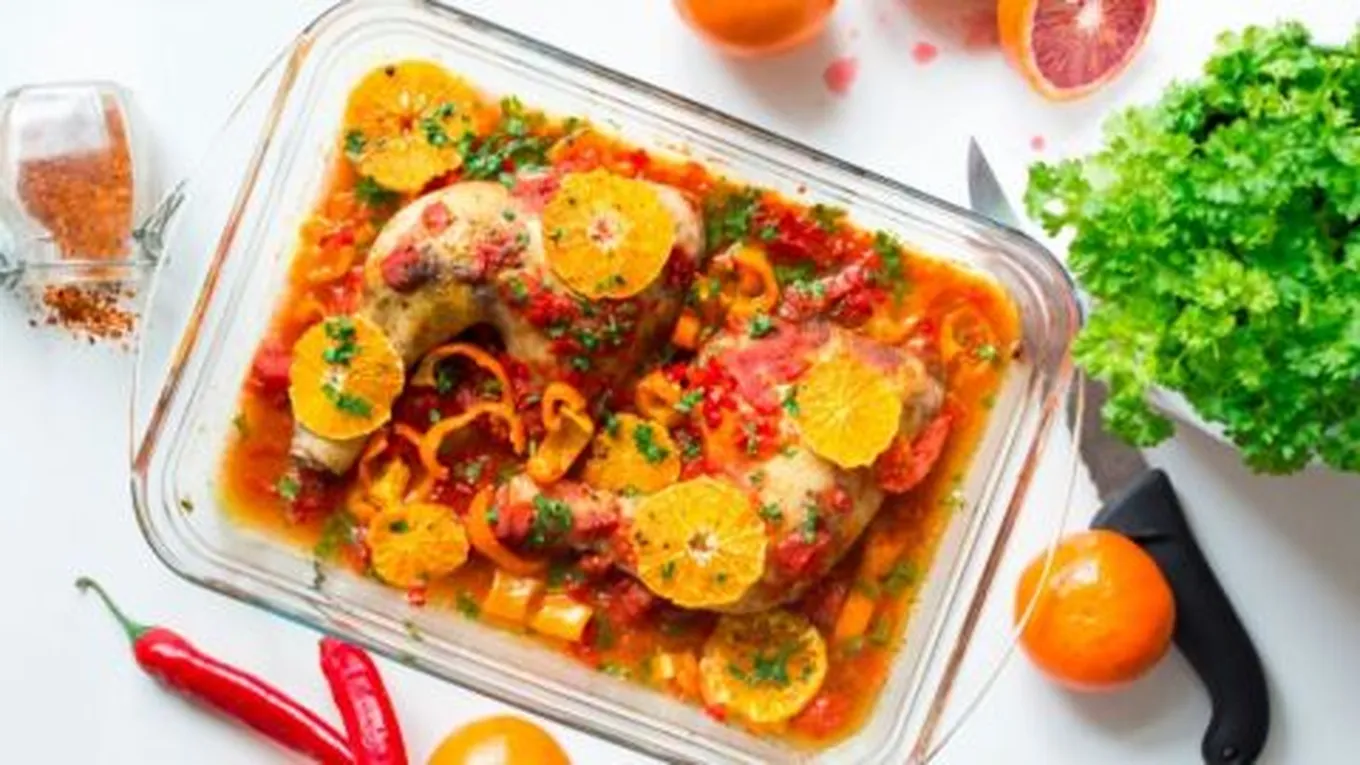 الدجاج المشوي بالأعشاب والحمضياتالمكوِّنات ربع كوب من زيت الزيتون. أربعة فصوص كبيرة من الثوم مفرومة. ملعقتان كبيرتان من السكر. ليمونة مقطعة إلى شرائح. عصير