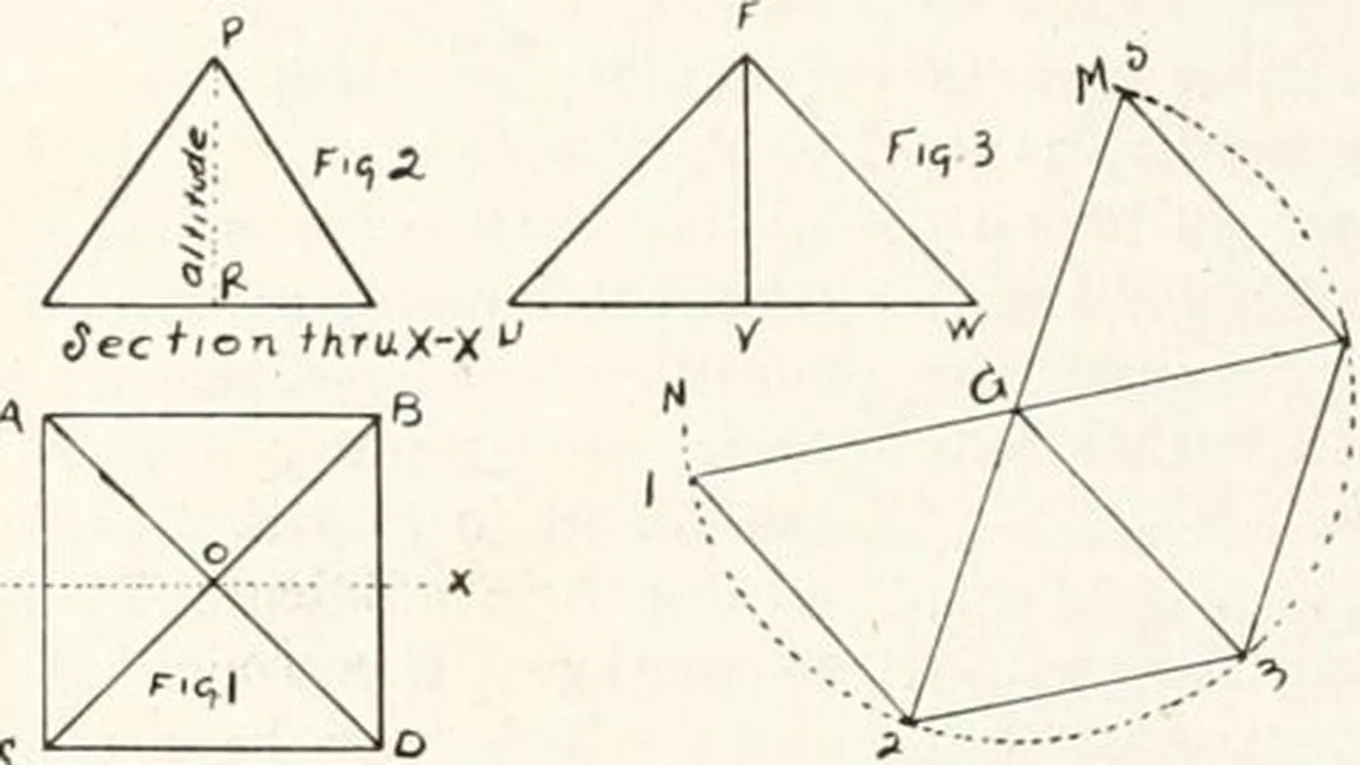 - يُقسم مثلث متساوي الساقين من المنتصف بإسقاط عمود من الرأس على القاعدة، فيتكون مثلثان قائما الزاوية متطابقان.