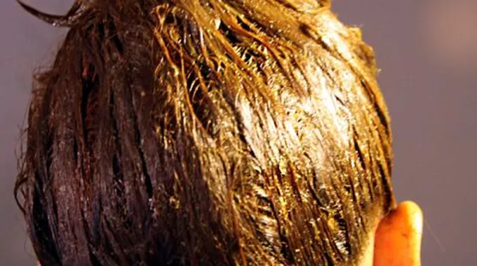 - نوزّع معجون الحناء على جميع أجزاء الشعر؛ بحيث يتغلغل من الجذور حتى الأعماق.