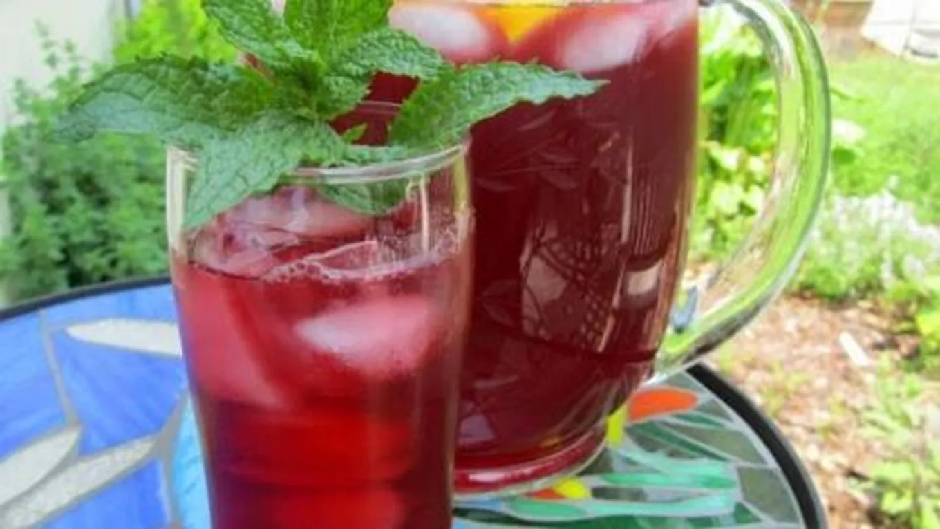 - نصفّي الكركديه من الأوراق ثمّ نضيف محلول السكر إلى عصير الكركديه.