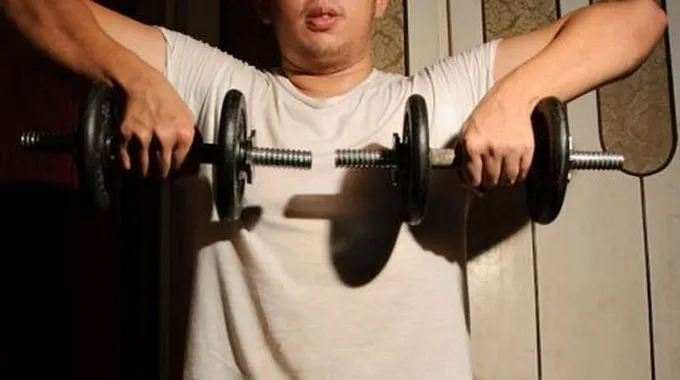 - الوقوف باستقامة، مع تثبيت ثقل ما في كلتا اليدين.