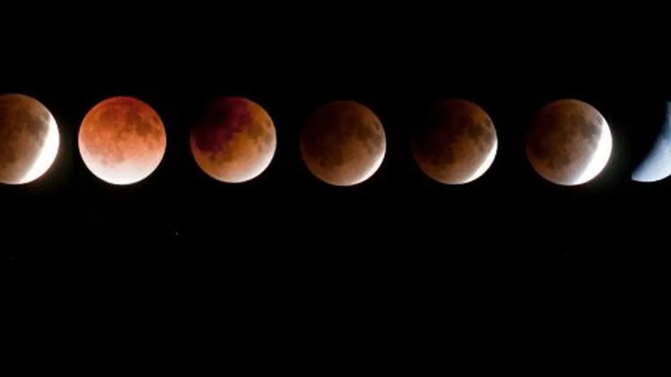 ظهور القمر باللون الأحمر أثناء الخسوف