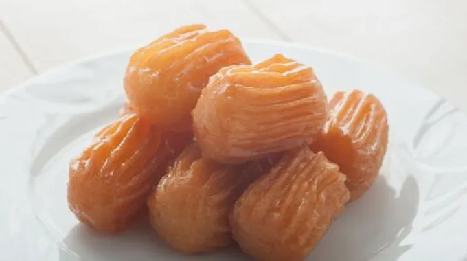 - نضع الخليط في كيس الحلواني، ومن ثم نسخن الزيت على النار، بعد ذلك نصب به العجينة عن طريق الضغط على الكيس الحلواني، وعند خروج العجينة نقطّعها باستخدام السكين، ونتركها حتى يصبح لونها مائلاً إلى الذهبي، ونضعها في وعاء القطر، بعد ذلك نصفيها من القطر الزائد، وهكذا تصبح جاهزةً للتقديم.