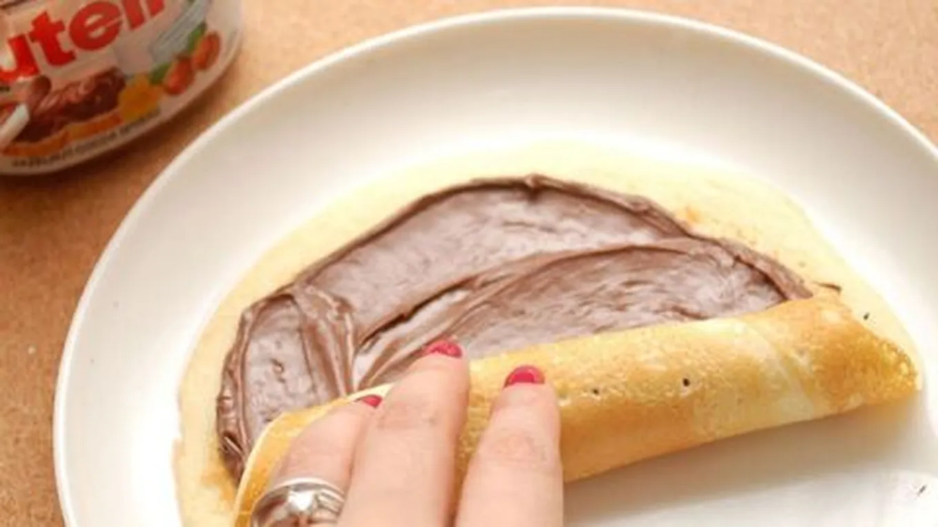 - ندهن الكريب بكمية مناسبة من شوكولاتة الدهن.