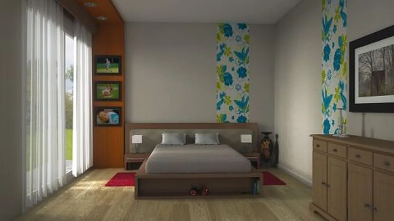 يمكن بكل بساطةٍ استخدام البياضات والشراشف ذات الأنماط المختلفة مثل الموردة لإضفاء شكل جميل على الغرفة.[2]