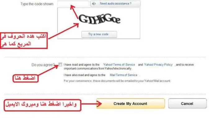 - تعبئة رمز التأكيد المرئي، والنقر على زر إنشاء حسابي