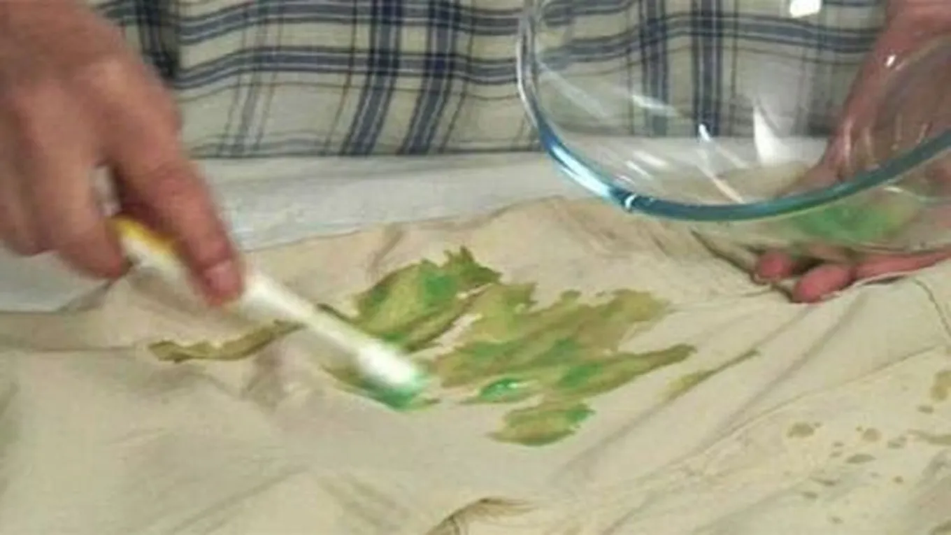 - ترك القطعة على البقعة لمدة ثلاثين دقيقة، مع الحفاظ على منطقة البقعة رطبة ودافئة، وعدم انتشار المحلول على باقي قطعة الملابس.