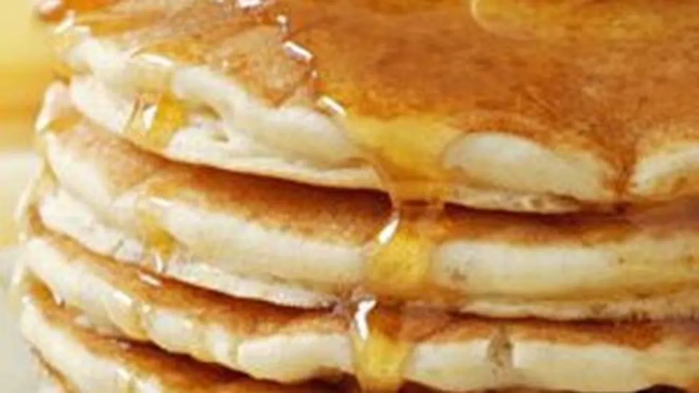 - نرتب أقراص البان كيك فوق بعضها ثم نزينها بالعسل وصلصة الشوكولاتة أو المربى.