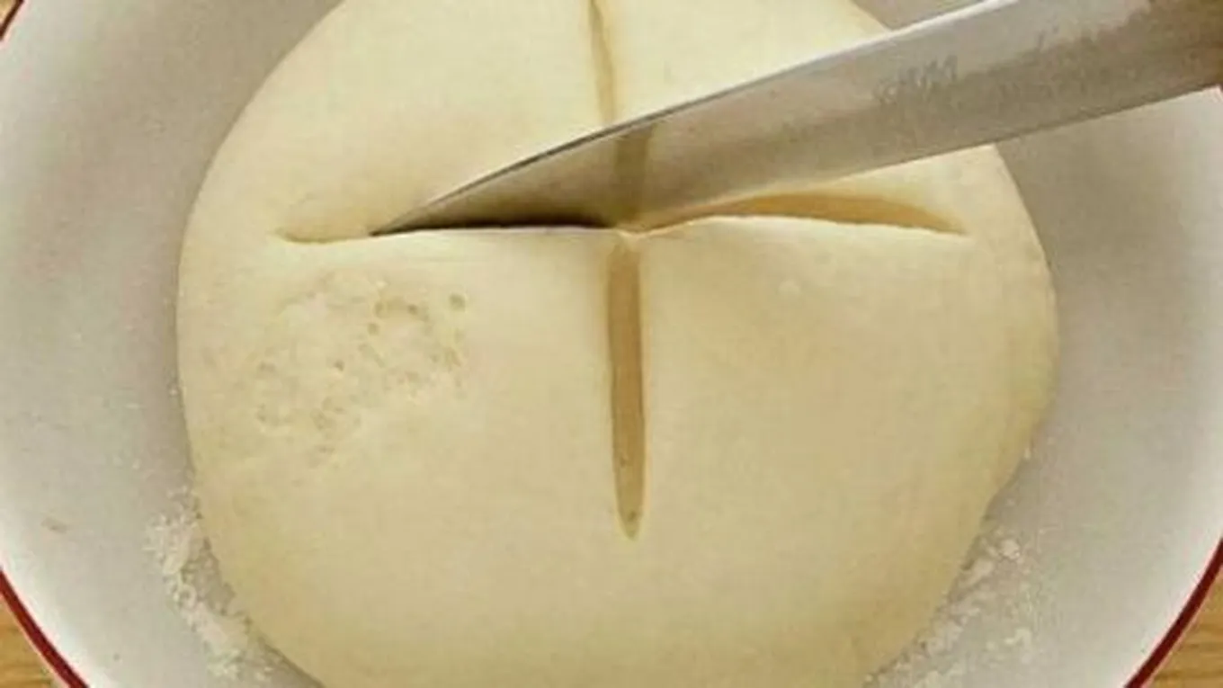 - اقلبي العجينة بعد مرور الوقت مرة أخرى على سطح مرشوش بالطحين، واعجنيه لثلاث دقائق.