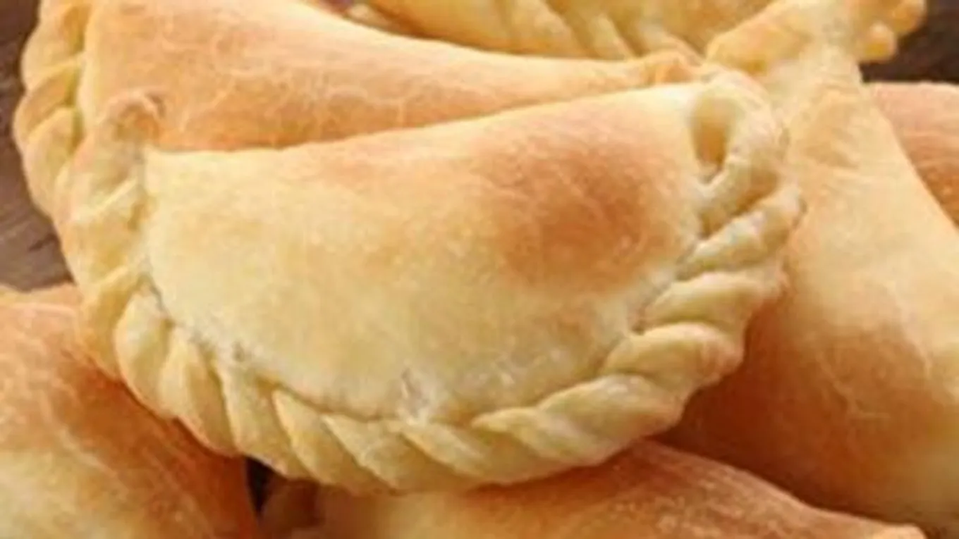 - نضع قليلاً من الحشوة داخل كلّ عجينة، ونغلقها على هيئة مثلث.