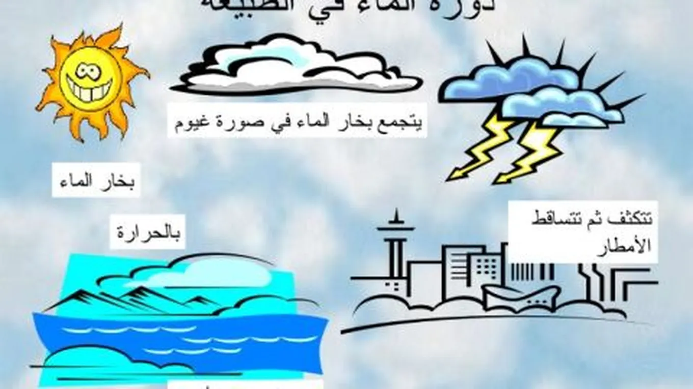 - يتكوّن بخار الماء نتيجةَ تعرّض مياه البحار والمحيطات لحرارة الشمس.