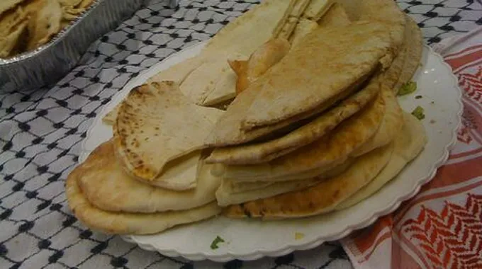 - تفرد كرات العجين بالنشابة، وتوضع في مقلاة واسعة غير لاصقة على الغاز لشي الأرغفة، وتقلب حتى تنضج.