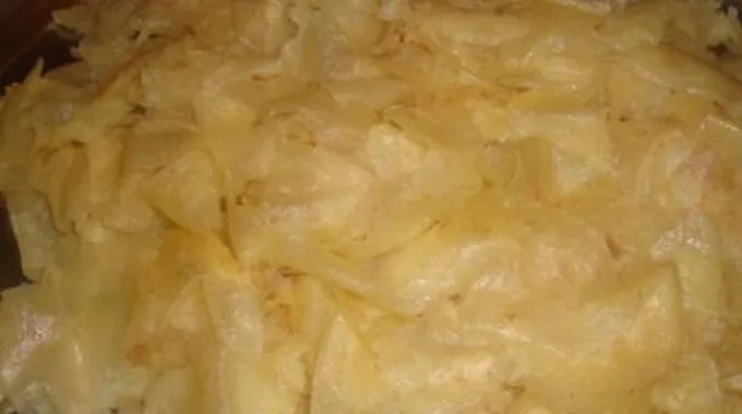 - دهن العجين الناضج بالقليل من الزبدة، ونرتبه في قاع طبق التقديم لسكب المرق عليه.