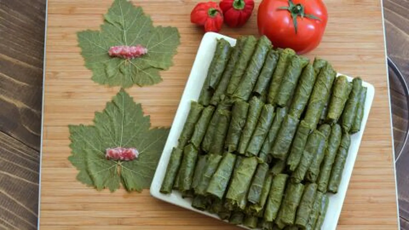 - ابدئي بلفِّ أوراق العنب بعد وضع الحشوة داخلها.