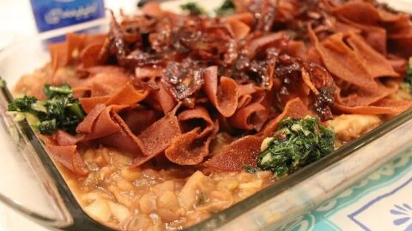 - كوب من كلٍّ من: العدس، والمعكرونة المسلوقة، والكزبرة المفرومة.
