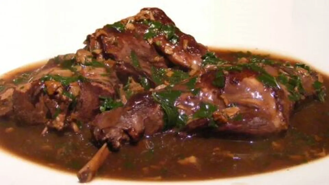 - يقدَّم مع لحم الأرنب المسبك مع الخضار الخبز المحمص.
