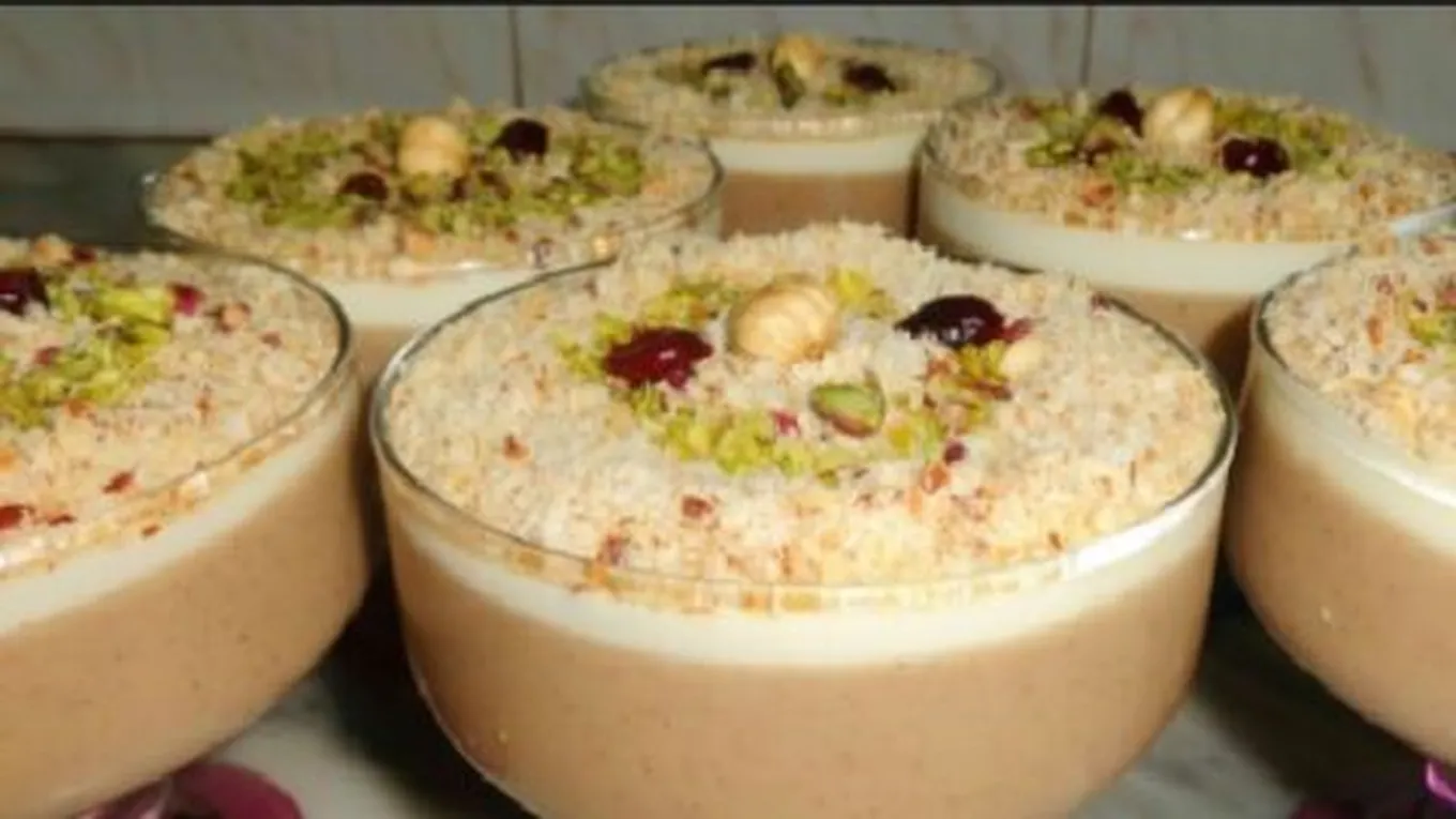 - اسكبي طبقة رقيقة من الكريمة على العصيدة في أكواب التقديم، واتركيها لتبرد.