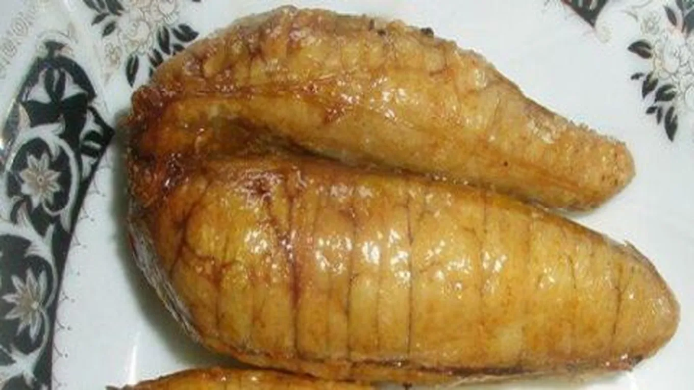 - ربع كيلوغرام من ثرب السّمك (بيض السّمك)، والمقطّع إلى مربّعاتِ بسمكِ اثنين سنتمتر.