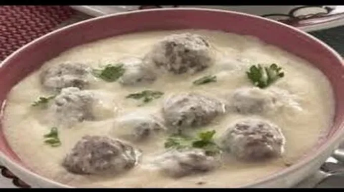 - توضع كرات اللحمة في اللبن المغلي، ويترك لحوالي نصف ساعة حتى ينضج.