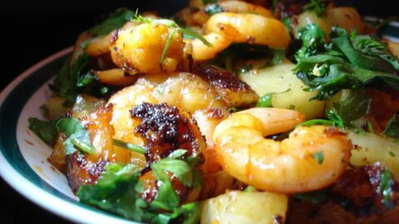 - نصف كيلو جرام من الروبيان ذي الحجم المتوسط، ويمكن الحصول عليه نظيفاً ومقشراً من أحد متاجر بيع الغذاء.