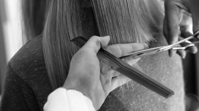- يتمّ تحديد الطول المراد قصّ الشعر عنده، مع البدء بقصّ الشعر أفقياً من الطرف الأيمن وحتى الأيسر أو بالعكس.