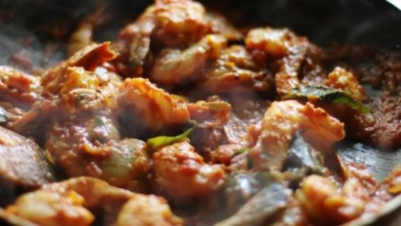 - نضع البصل في قدر متوسط على نار هادئة، ونحمره، ثم نضيف الثوم والكاري، ونحرك المكوّنات، ثمّ نضيف الطماطم المفرومة، وعصير التمر الهندي، ونتركه لبضع دقائق.