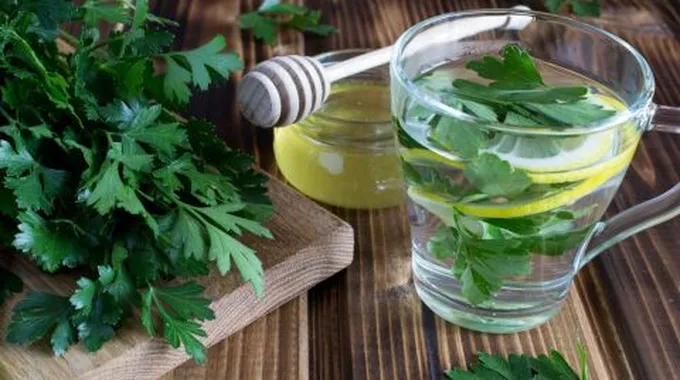 - شاي البقدونس: ننقع ملعقتين كبيرتين من البقدونس المفروم في كوب من الماء المغلي لمدة ثلاثين دقيقة، ثم نصفيه، ونتناوله، ونكرر هذه الوصفة أربع مرات يومياً قبل موعد الدورة.