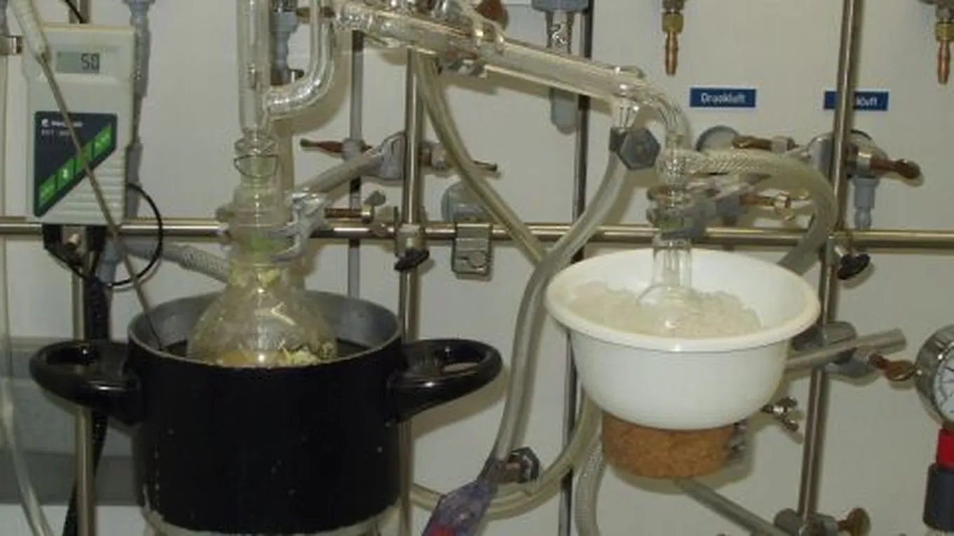 - إحضار زجاجتين، إحداهما معقوفة للخارج لمنع الماء المقطر من العودة إلى الزجاجة الأولى.