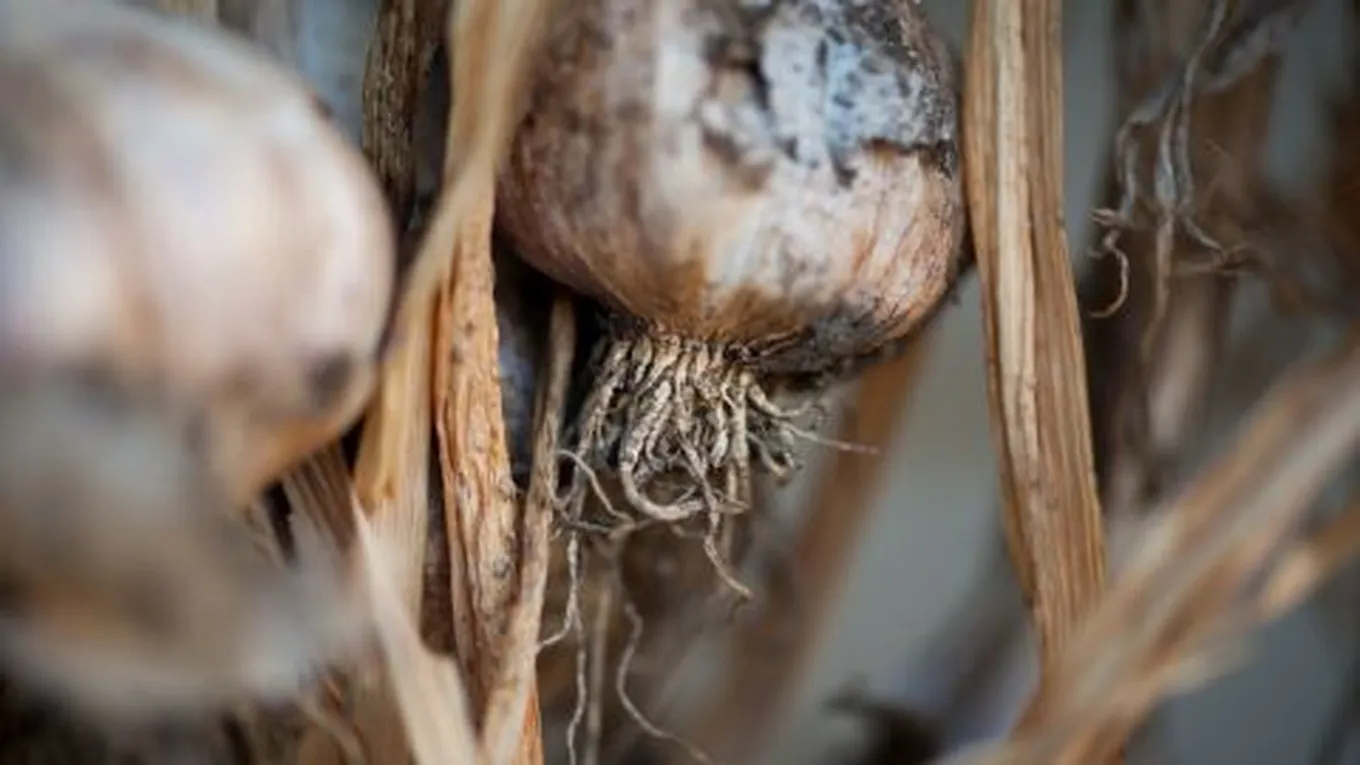 - ترك الثوم حتى يجف من دون نزع الجذور والسيقان عنه، وعدم غسله نهائياً.