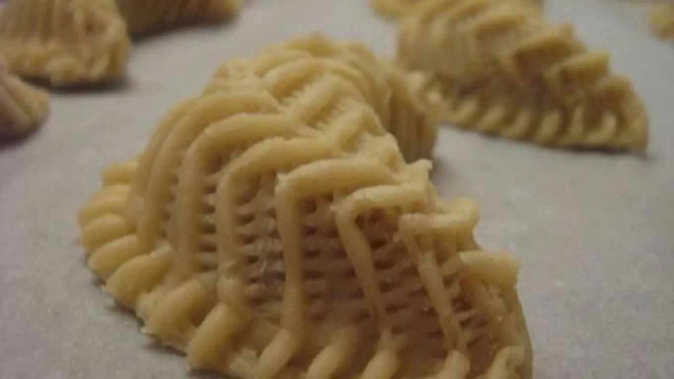 - ملقط النكش: أمسكبي حبة الكعك بيدكِ، وضعيه على طرف الحبة، واضغطي عليها بالملقط بلطف، مع تكرير الحركة بشكلٍ عمودي وأفقي، ثمّ شكلي نقشات صغيرة على محيط الفراغ الداخلي، حتّى تصبح على شكل وردة.