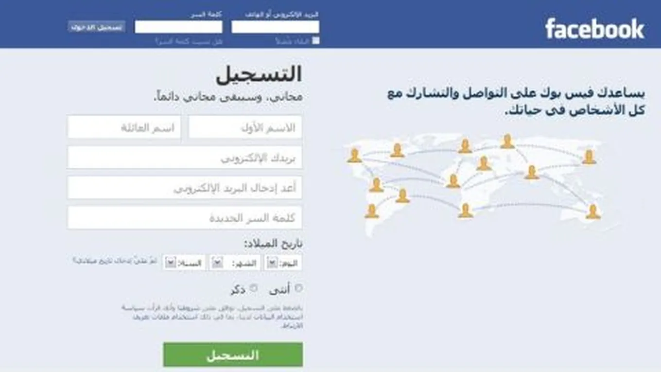 - يوجد في الصفحة الرئيسية نموذجاً للتسجيل، اكتب بياناتك بالكامل ويجب أن تكون صحيحة حتى يتعرف عليك أصدقاؤك وتتمكّن من الاتصال والتواصل بسهولة أكبر، كل ما عليك هو كتابة اسمك، وعنوان بريدك الإلكتروني، ورقم هاتفك النقال، وكلمة المرور، وتاريخ ميلادك، وجنسك، ورمز التحقّق. وفي حالة عدم ظهور النموذج، اضغط على التسجيل لتعبئة النموذج.