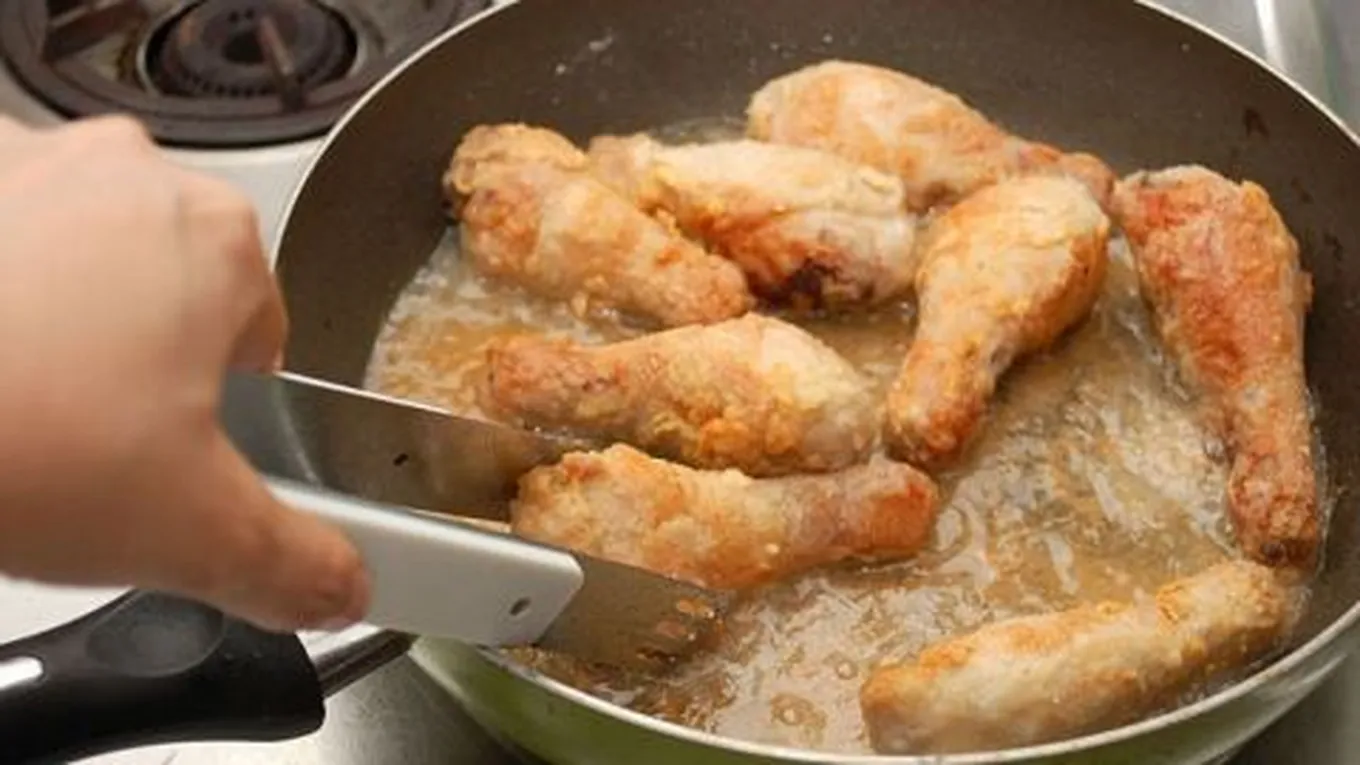 - ضعي الزيت في قدر عميق، ثمّ ارفعيه على النار حتى يحمى، للتأكد أن الزيت وصل لدرجة الحرارة المطلوبة، ضعي القليل من الدقيق، إن بقي على وجه الزيت فهذا دليل على أنّ الزيت أصبح حامياً، ابدئي بوضع الدجاج.