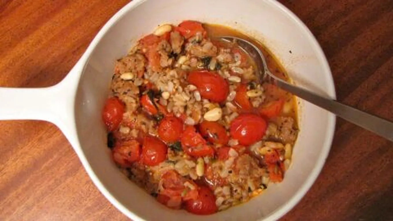 - وضع السمن في مقلاة ورفعها على النار لإذابة السمن ثم إضافة الثوم والبصل وتشويحِهما حتَّى يَكتسِبا اللَّون الذَّهبي ثمَّ إضافة السجق وتشويحه حتَّى يُصبح أحمر اللون.