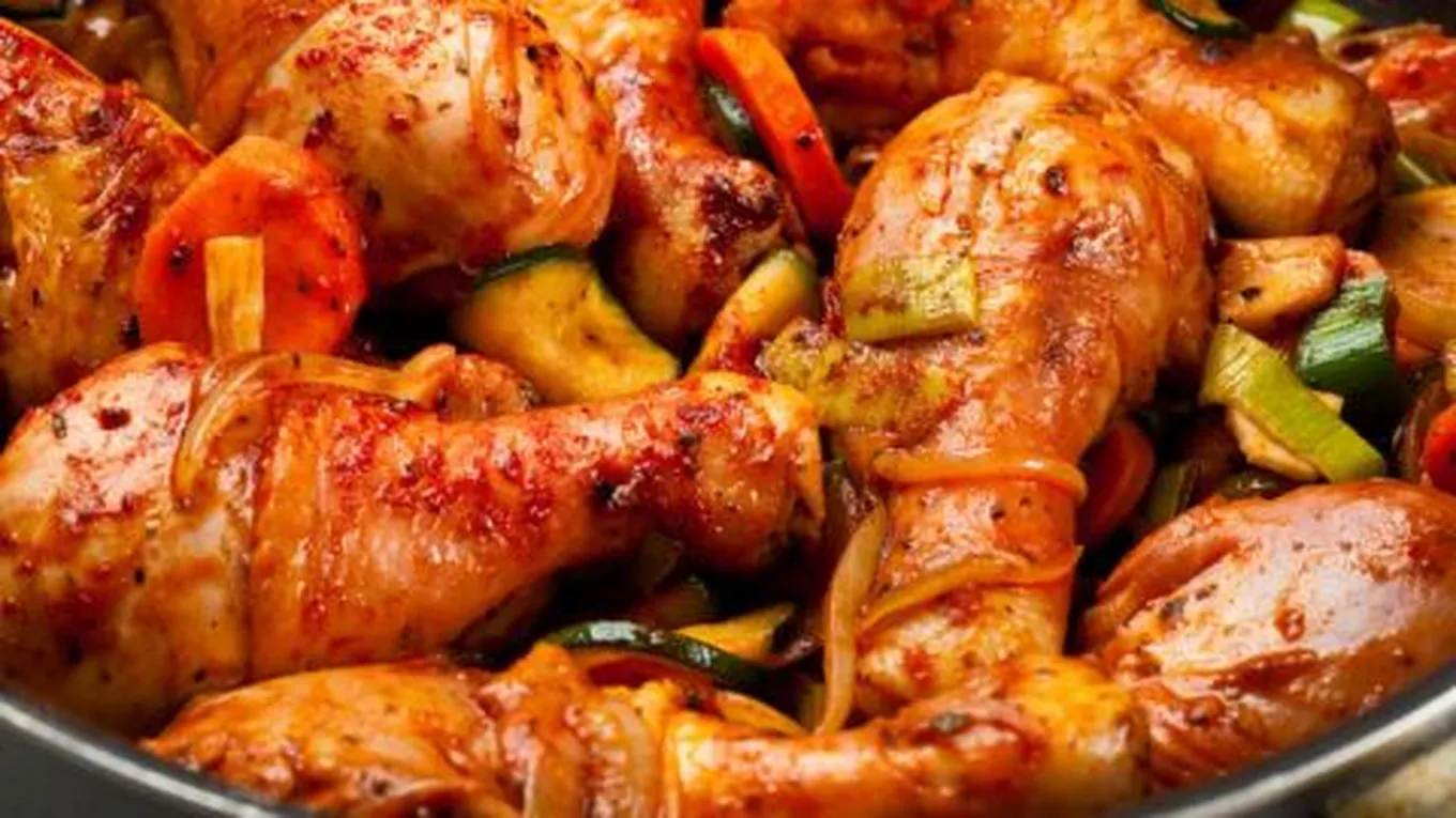 - نقدّم أفخاذ الدجاج بالخضار وهي ساخنة، وبجانبها الأرزّ الأبيض.