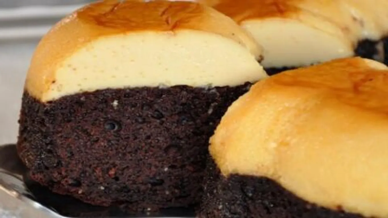 - نصبّ الكراميل في قاع قالب الكيك ونضعه جانباً.