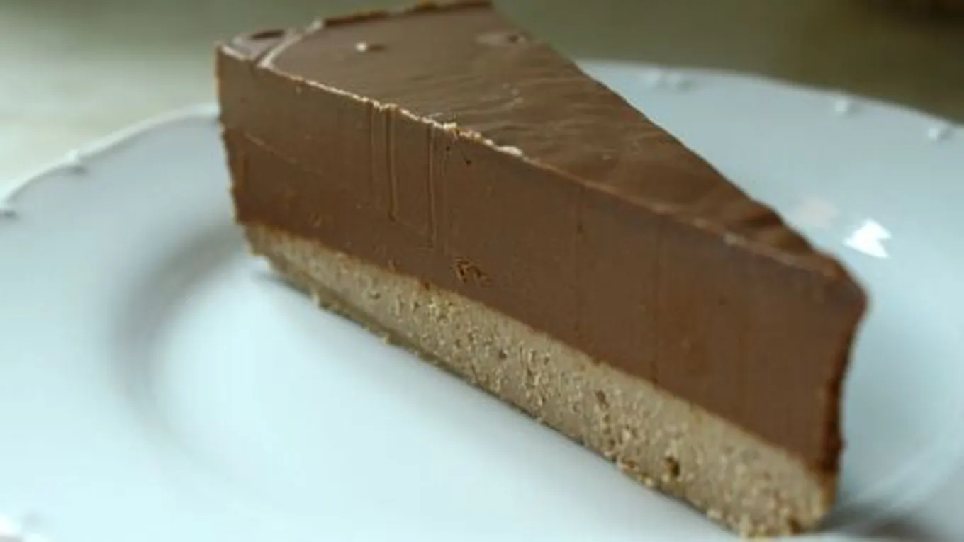 - سكب خليط الشوكولاتة وفرده بالتساوي فوق خليط البسكوت المجهز.