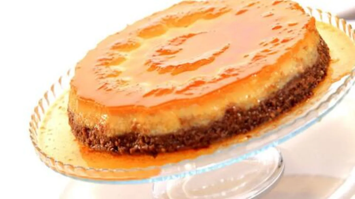 - نقوم بإضافة الخليط إلى الكراميل الموجود في القالب.
