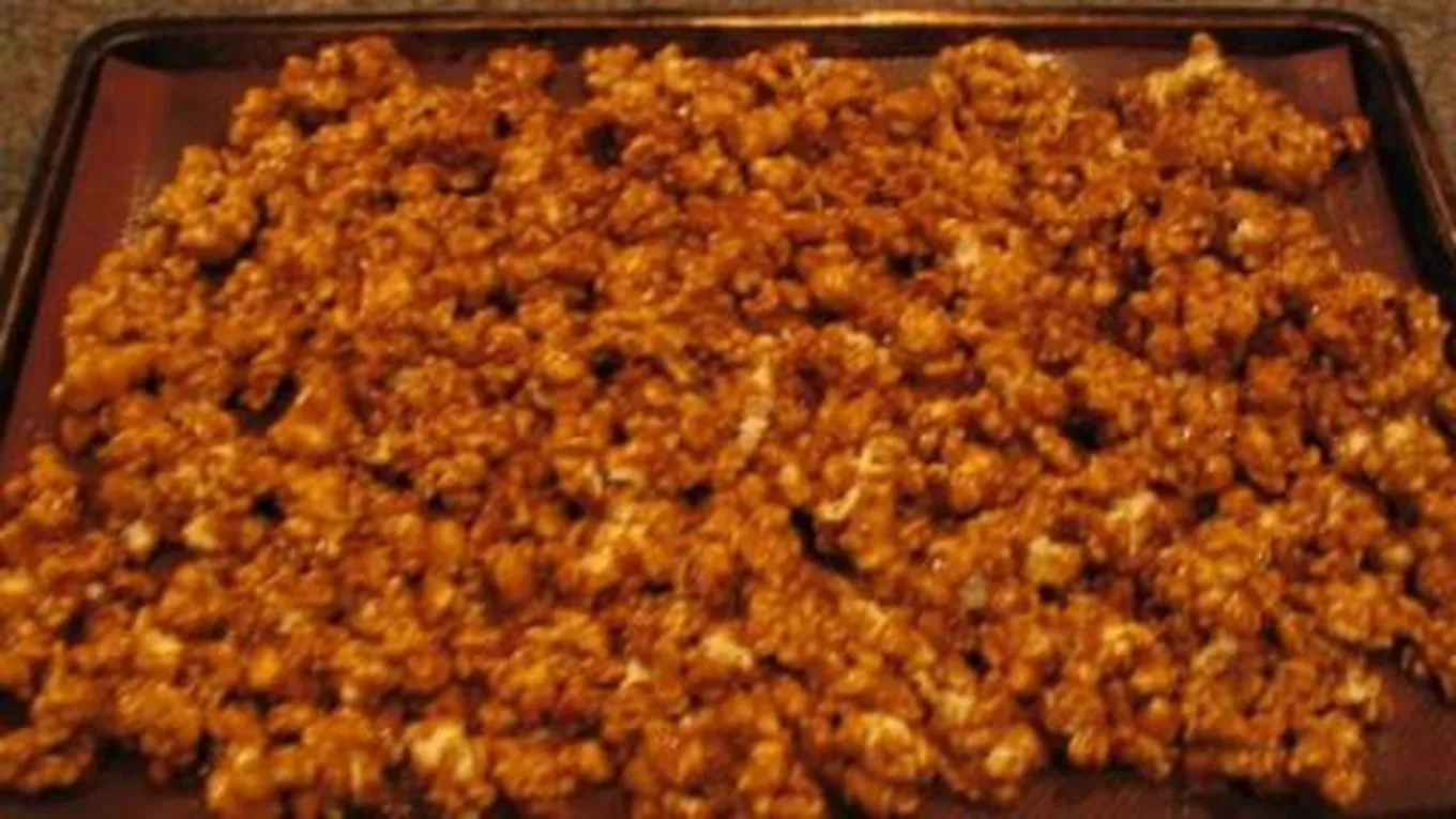- نسكب مزيج الكراميل فوق الفشار مباشرة.