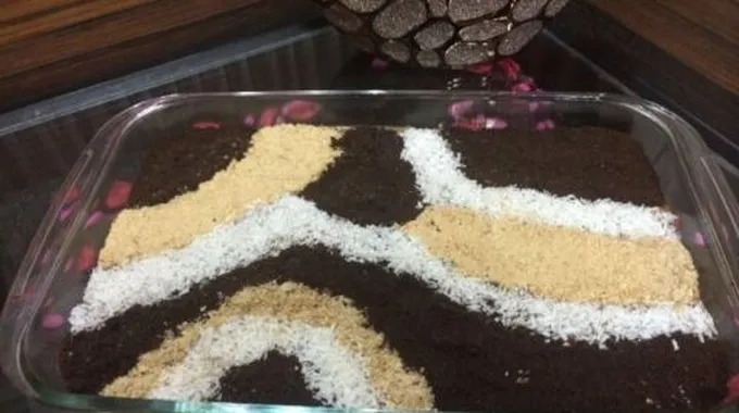 - زيّني الوجه بالبسكويت العادي، وبسكويت الشوكولاتة المطحون، والفستق الحلبي المطحون، وجوز الهند بالترتيب، وعلى شكل خطوط عريضة للحصول على شكل سجادة، ضعيها في الثلاجة مدة ساعة حتى تتماسك، وبعد ذلك قدّميها.