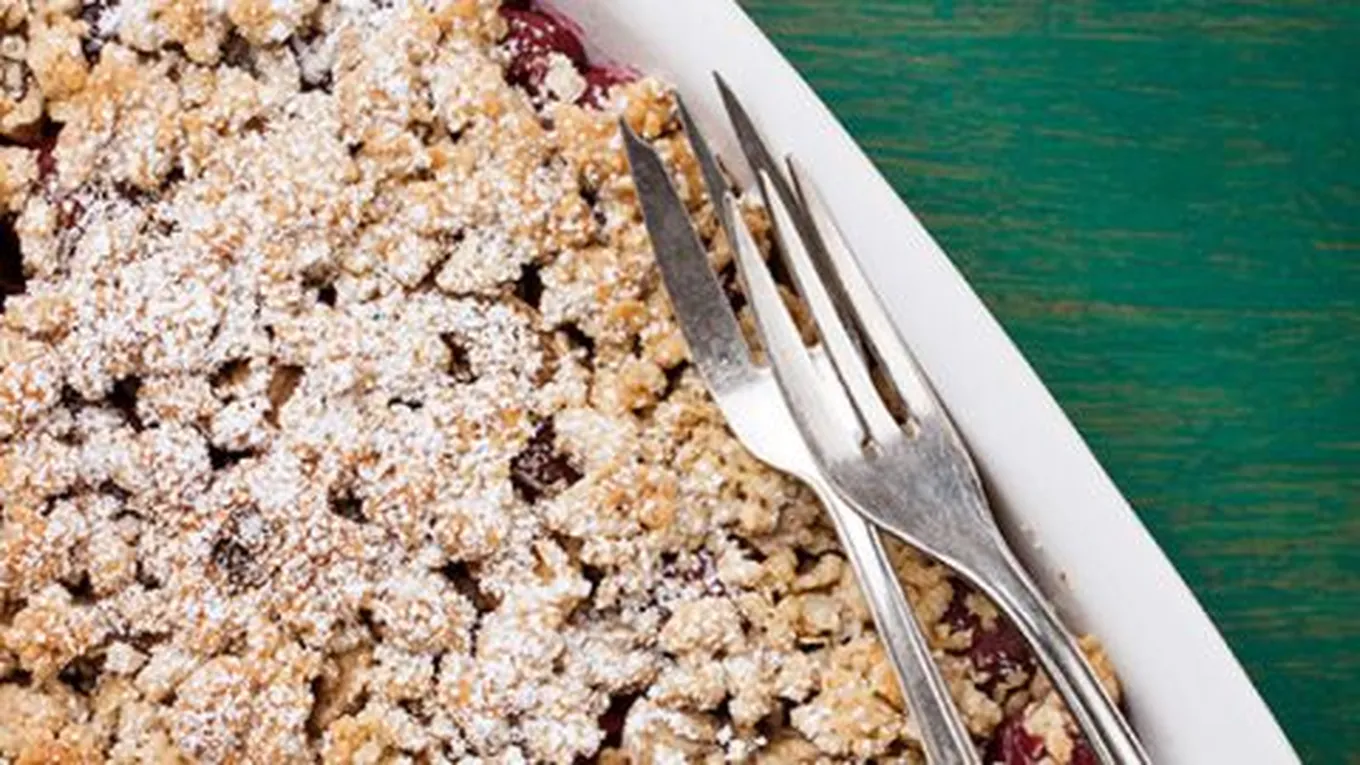 - برش المتبقي من العجينة بشكلٍ عشوائي فوق المربّى بحيث يَتغطى بالكامل ويجب عدم الضغط على العجينة بعد برشها.