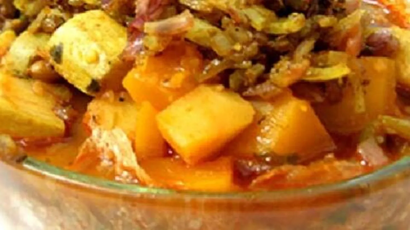 - كيلوغرام من كلّ من: لحم الغنم المقطّع إلى مكعبات، والبطاطس المقشّرة والمقطّعة إلى مكعبات متوسطة الحجم.