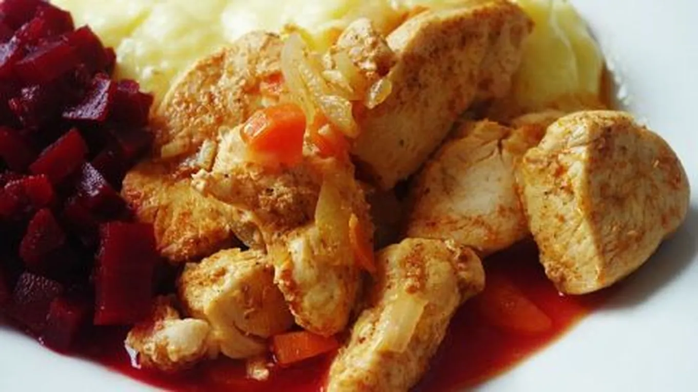 - سكب كاري الدّجاج الحار في طبق تقديم عميق وتقديمه ساخناً مع الأرز المطبوخ.