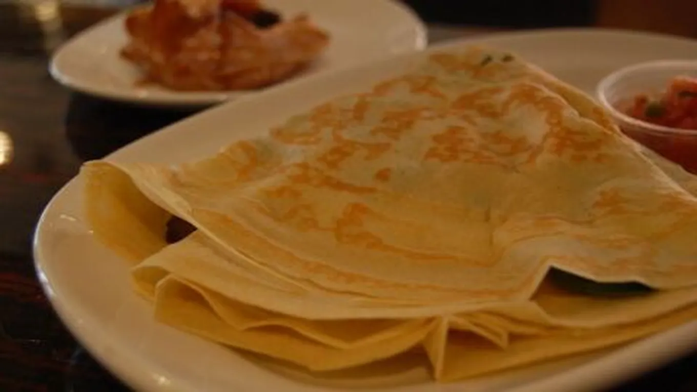 - تسخين المقلاة على نار متوسطة الحرارة ودهنها بالزيت باستخدام فرشاة الطعام ثمّ سكب ربع كوبٍ من الخليط في المقلاة مع إمالة المقلاة بشكلٍ دائري لملئها بالخليط.