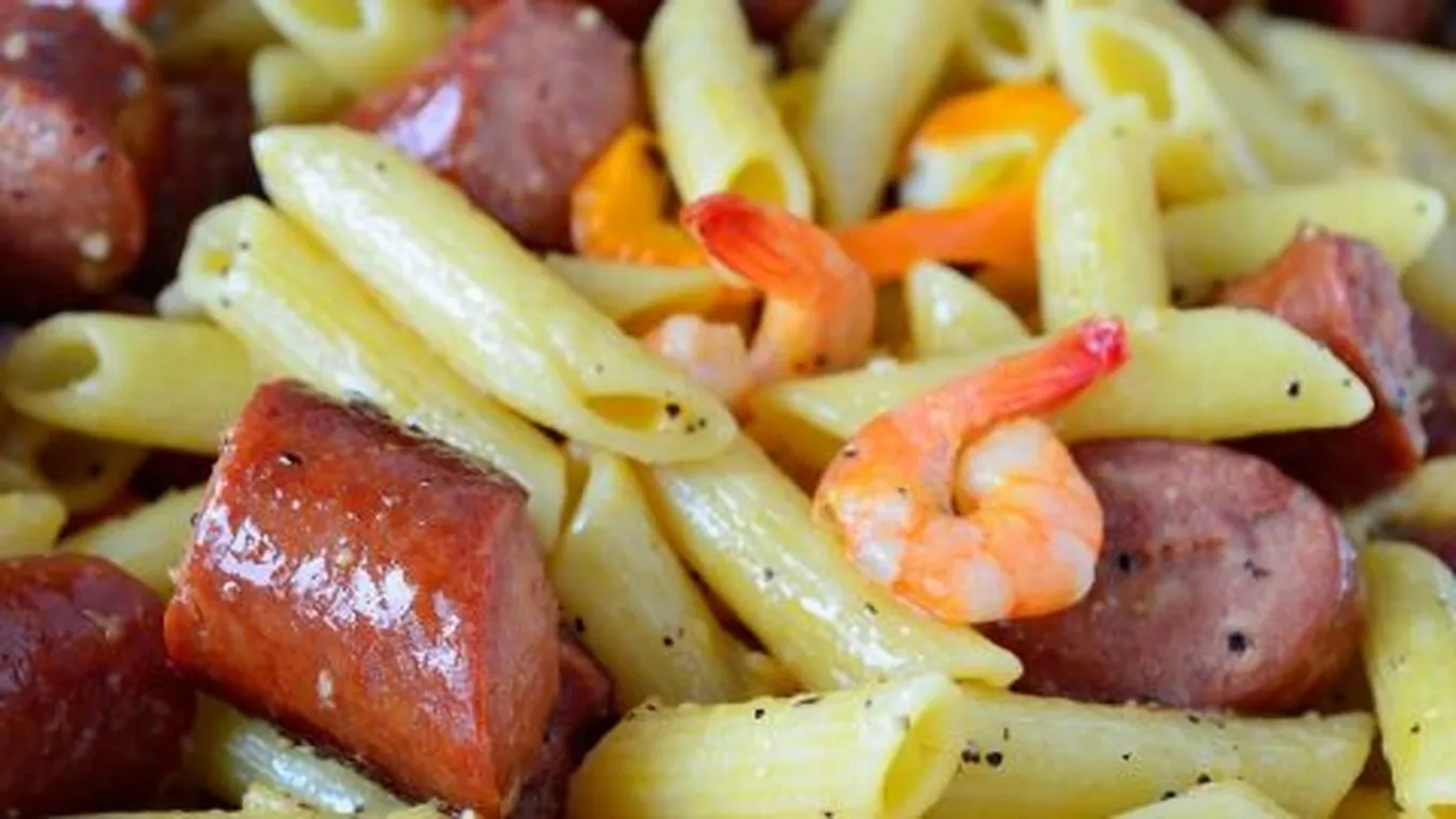 - نسكب المعكرونة بالنقانق في أطباق للتقديم، ثم نُقدّمها.