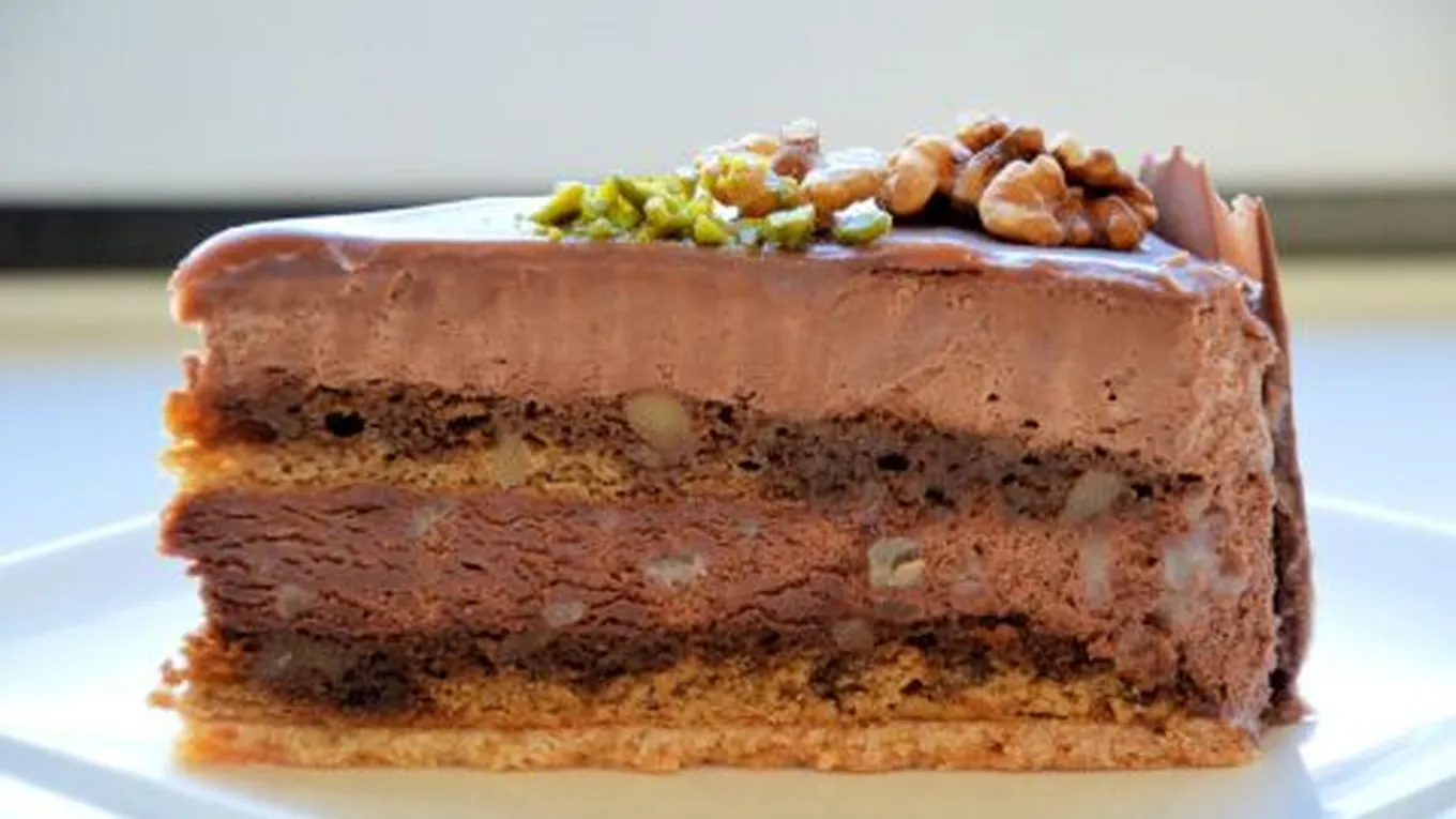 كيك طبقات مع آيس كريم الشوكولاتة