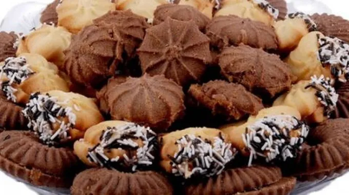 - ضعي قطع البيتي فور على شبك من المعدن حتى تبرد تماماً، ثم زيّنيها بالشوكولاتة المذابة والمكسرات.
